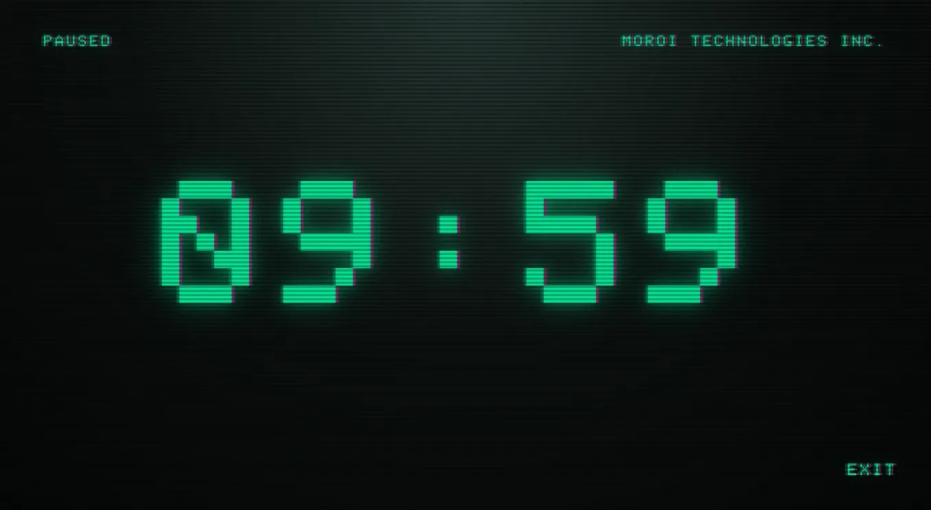 Seconds tick by with soft beeps, which slowly increase in volume as the countdown progresses. The pitch also ramps up over the last minute, to increase the tension. At 00:00 it plays an elevator ding and door opening. Not 100% accurate to the module, but it's evocative.